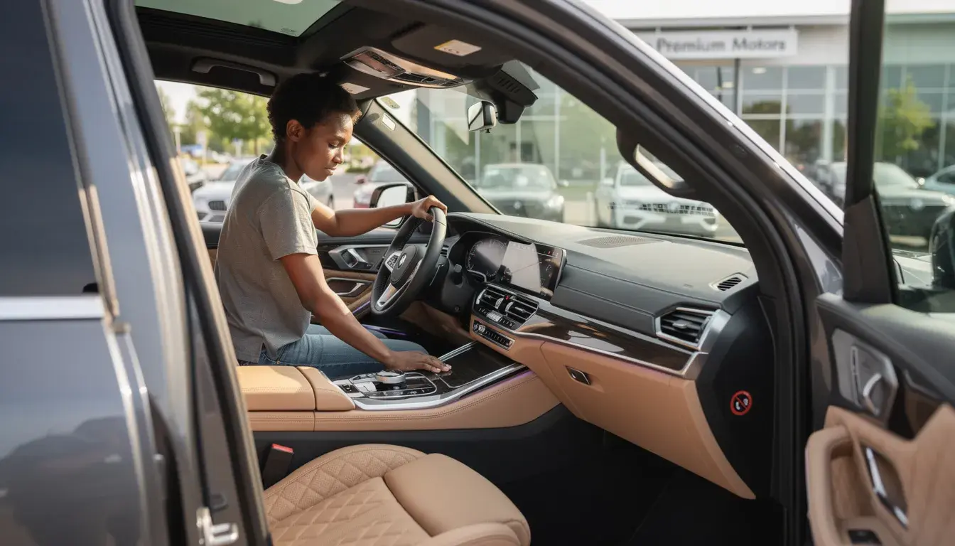 - Tech and Comfort Check: Verify that cooled and heated seats, heated steering wheel, navigation, Apple CarPlay or Android Auto, Bluetooth phone pairing, backup camera, and all driver assistance features function correctly. Cycle through infotainment screens to check for lag or unresponsive inputs.